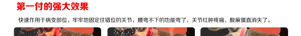 ②本品是贴的产品,但绝非传统膏贴可比,由新工艺炮制有效外敷,特别是对腰椎间盘突出,颈椎 ,骨质增生,肩周,越严重越明显,对于想做手术者和急性发作期更显物有所值。